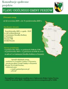 Ogłoszenie Wójta Gminy Perzów o rozpoczęciu konsultacji społecznych dotyczących projektu Planu Ogólnego Gminy Perzów Bez kategorii Obwieszczenie ← Previous post Next post →