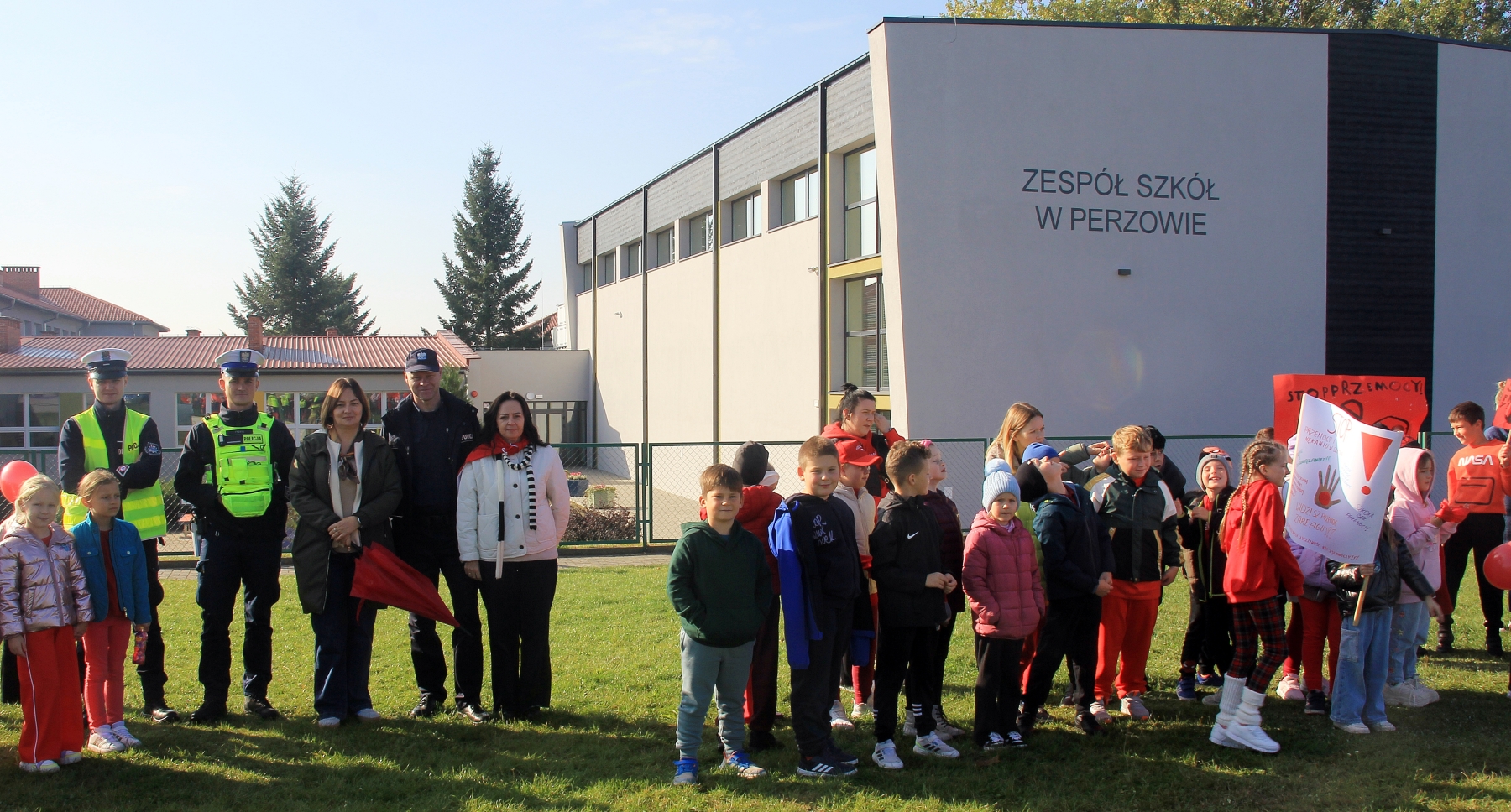 Zespół Interdyscyplinarny w Gminie Perzów w ramach obchodów Międzynarodowego Dnia bez Przemocy, we współpracy z Ośrodkiem Pomocy Społecznej oraz Zespołem Szkół w Perzowie i Trębaczowie, zorganizował marsze w celu promowania życia rodzinnego bez przemocy. Bez przemocy również w szkole i w przestrzeni publicznej. PRZEMOCY MÓWIMY STOP!